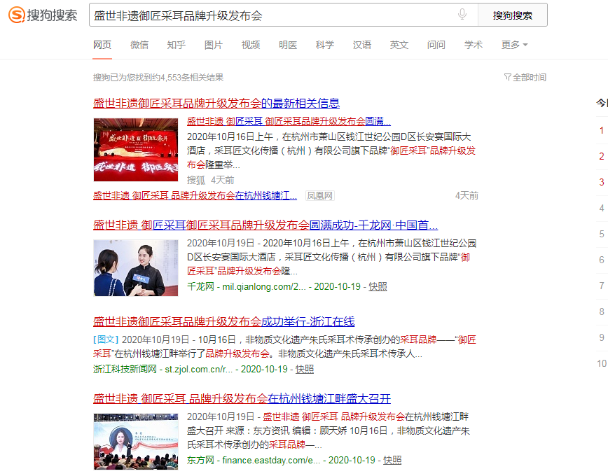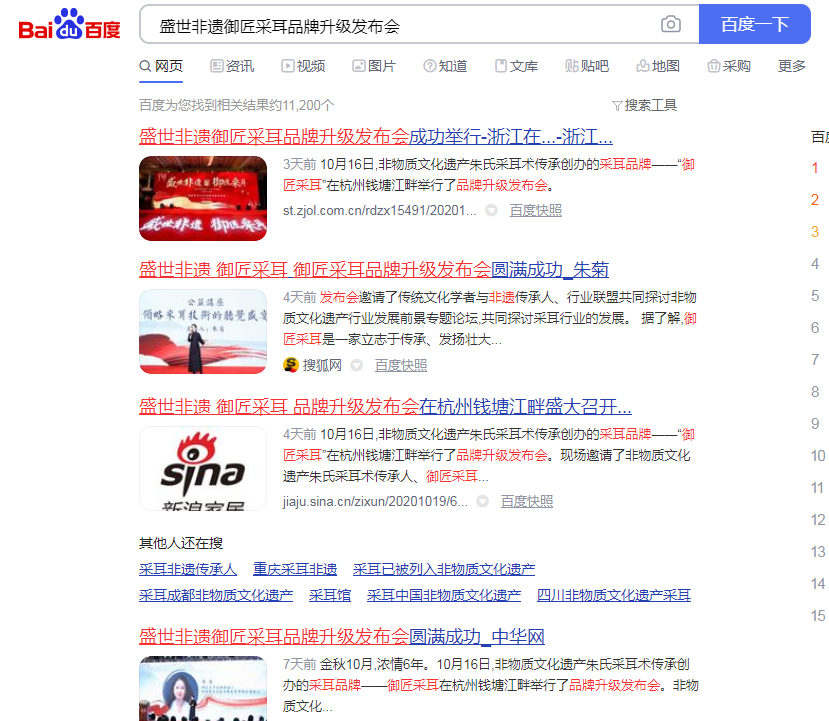 非物質文化遺產朱氏采耳術傳承創辦的采耳品牌——“御匠采耳”在杭州錢塘江畔舉行了品牌升級發布會。非物質文化遺產朱氏采耳術傳承人、御匠采耳品牌創始人朱菊女士、裴晨風先生、及傳統文化學者、行業聯盟、合伙人、加盟商、學員代表等共同出席發布會。(杭州站)現場媒體部分統籌邀請 浙江電視臺 浙江在線 錢江晚報 杭州日報 等 相關媒體轉發報道30多家。 活動現場拍攝圖片 部分邀請媒體現場相關報道 盛世非遺御匠采耳品牌升級發布會圓滿成功