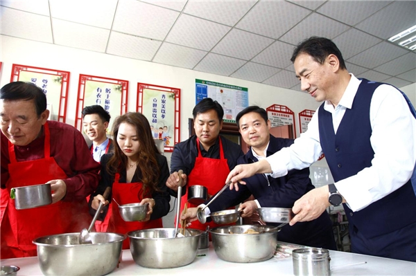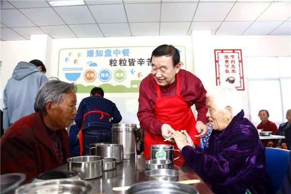 慰問(wèn)演出結(jié)束后,“同心圓夢(mèng)藝術(shù)團(tuán)”文藝志愿者來(lái)到新崗村幸福食堂,為村里留守的孤寡老人和殘疾老人當(dāng)起了“食堂服務(wù)員”,與老人們共同歡度佳節(jié);