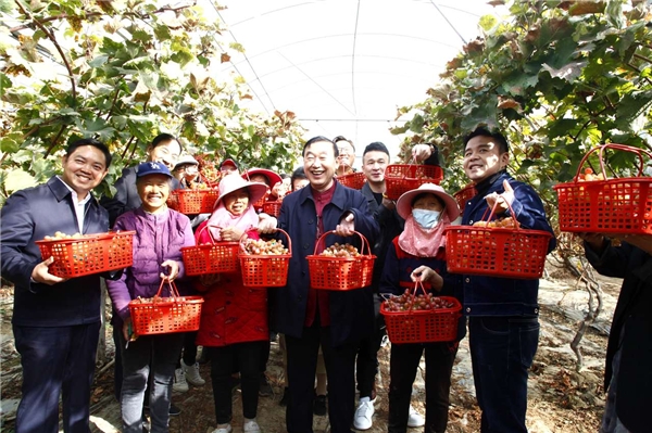 隨后小分隊(duì)來(lái)到敦厚村的葡萄種植大棚,豐收果實(shí)、高掛枝頭,志愿者與種植農(nóng)戶一起采摘葡萄,共話鄉(xiāng)村振興、扶貧攻堅(jiān)、增產(chǎn)增收,葡萄大棚中滿是喜悅的笑聲。